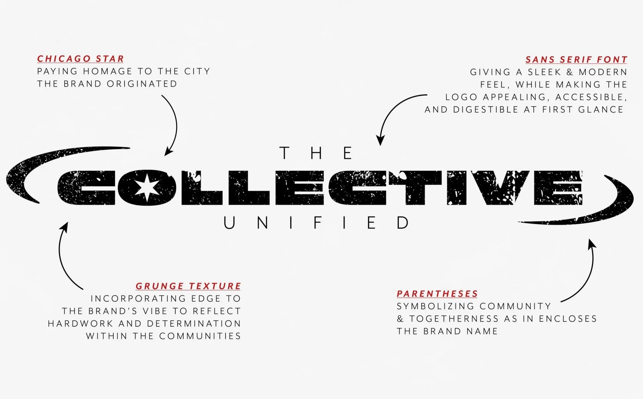 I was given the opportunity to work with a Chicago-Based Startup Brand as a freelance designer. The Collective Unified is a lifestyle brand that hosts sponsored events to bring people from the community together through shared interests. I was brought on to build the entire visual identity of the brand from the ground up, working with the founder to create an edgy, memorable logo suite. The challenge proposed to me was to create not only one logo suite for the overall brand, but 6 additional logos for each community space. Each should show the individuality of their space, but also be cohesive with each other and the overall brand.